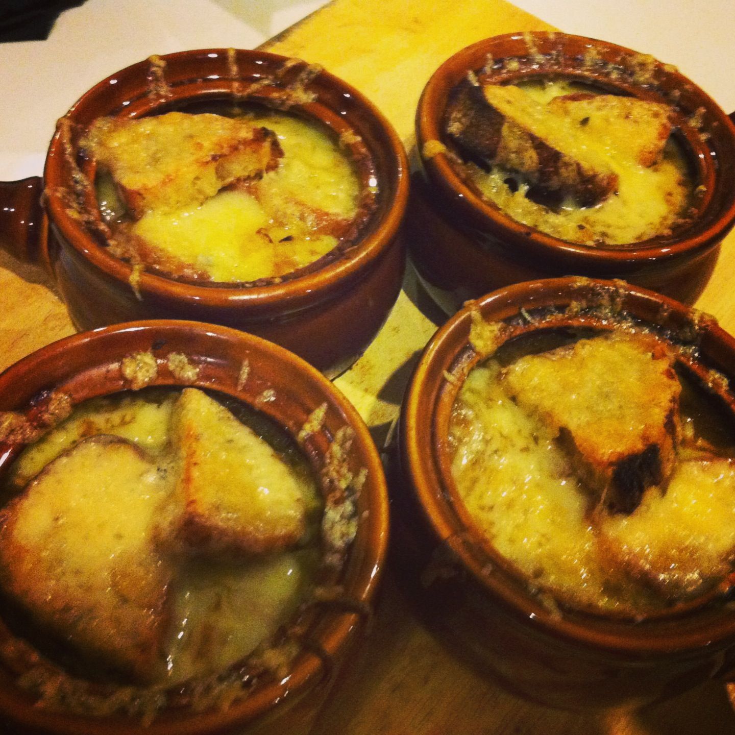 The soup itself is rich with caramelised oniony goodness. It has an earthy flavour which is derived by using been consomme rather than regular beef stock, as well as red wine. It is the most perfect thing to have for an early dinner on a cold winter’s day with a deep dark glass of red wine. I hope you enjoy
