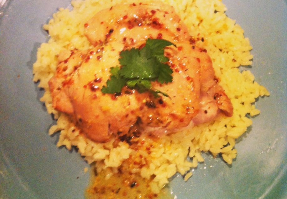My husband has a fondness for all savoury things that are lemony, so naturally I try and create new lemony things and experiment with flavours that go with lemon a lot. In this recipe, the mustard and herb marinade infuse the chicken thighs with flavour, and the lemon sauce tenderises it so that it is super succulent. People have asked if they can use chicken breasts rather than thighs – the results would be much less succulent and moist but you can definitely do it. I personally prefer thighs as they are more flavoursome and juicier.